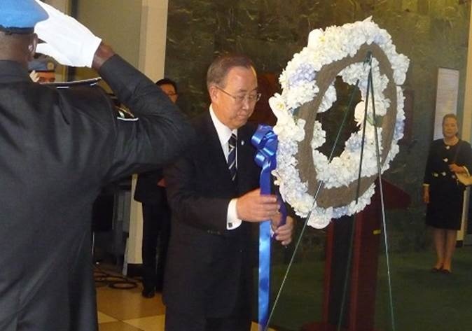 29 мая в ООН и в мире был торжественно отмечен Международный день миротворцев ООН. Генеральный Секретарь ООН Пан Ги Мун возлагает венок в память миротворцам, отдавшим свою жизнь за восстановление мира на Земле.